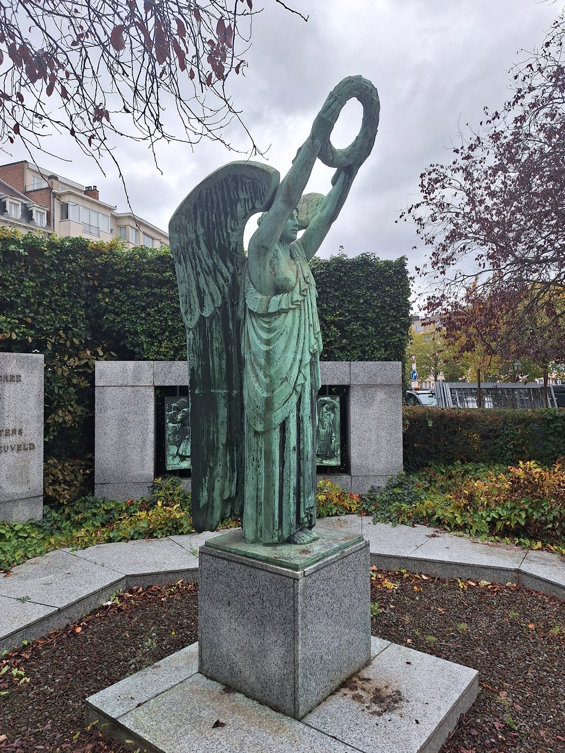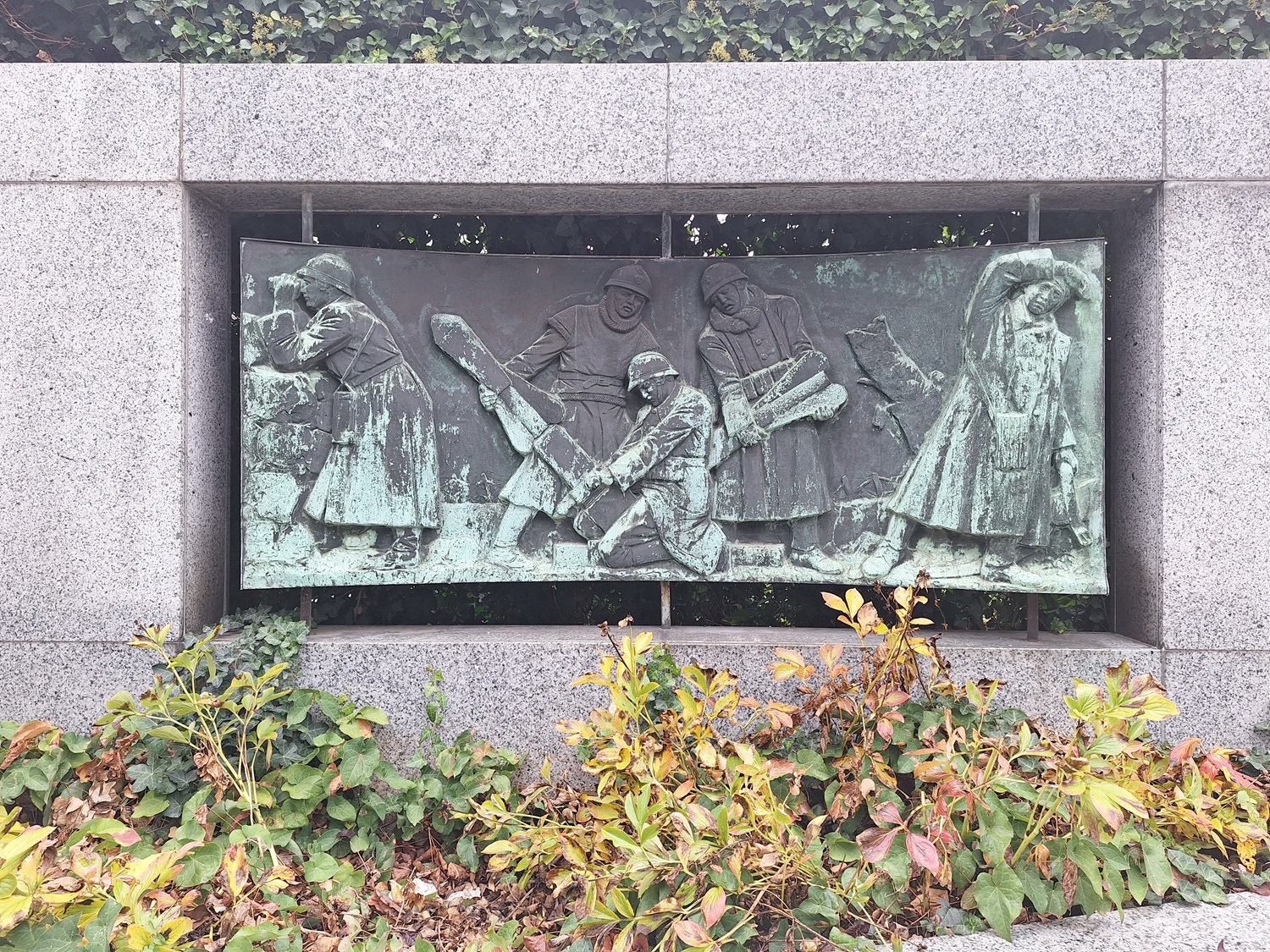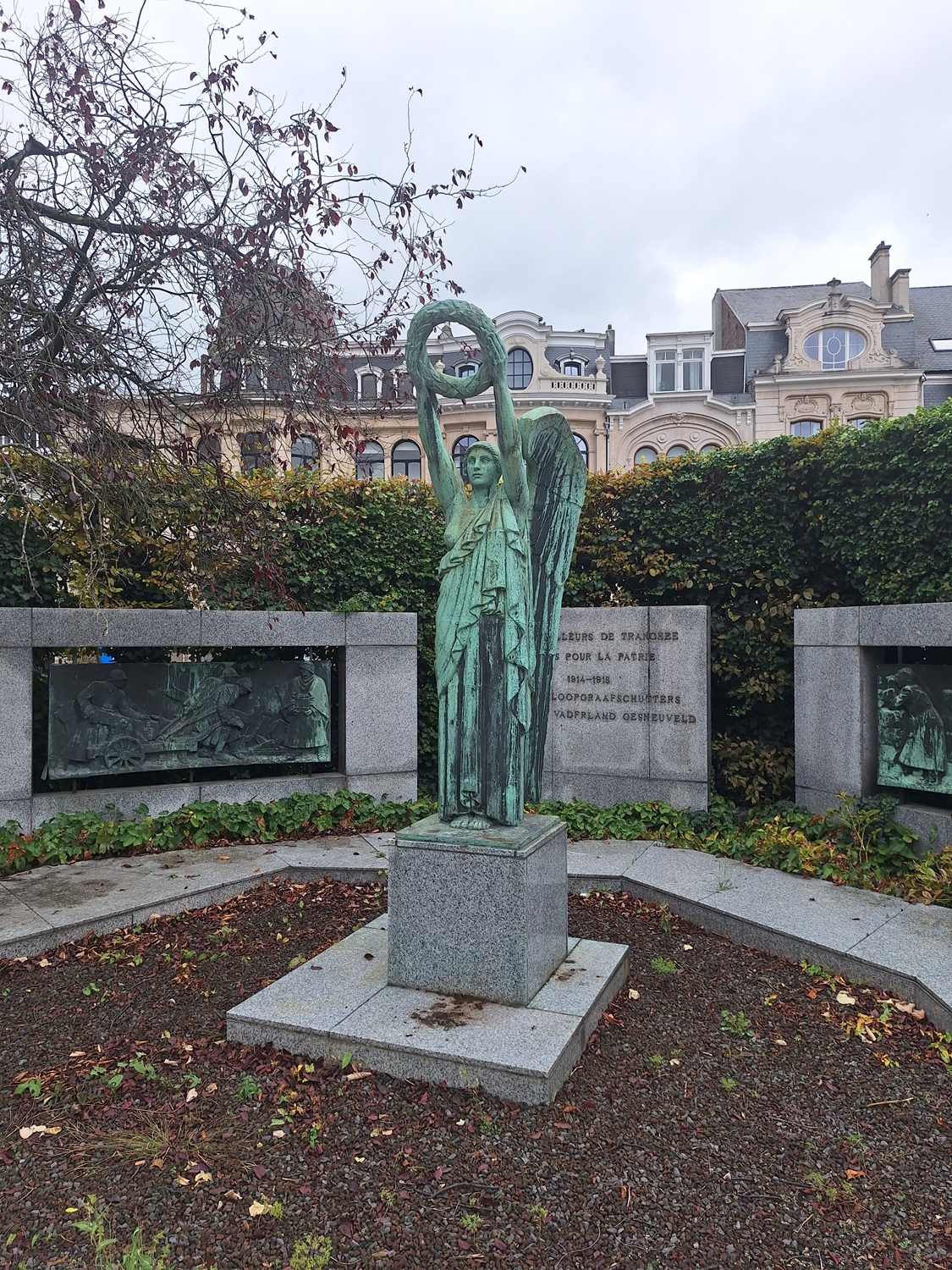 Le monument en l'honneur des artilleurs inauguré le 6 mai 1934, portant l'inscription « MONUMENTS AUX ARTILLEURS DE TRANCHÉE MORTS POUR LA PATRIE 1914-1918 » et incluant une statue de la Victoire et deux bas-reliefs, signés et datés « M. WAUCQUEZ et R. GEYST fondeur Bruxelles ». À cause des travaux du métro, le monument d'origine fut démonté et déplacé en limitant ses dimensions.