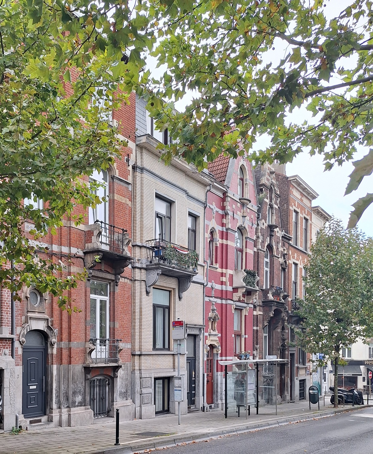Trois maisons bourgeoises de style néo-Renaissance flamandeLe style Renaissance flamande (XVIe s.) mêle des éléments inspirés de la Renaissance italienne à l’héritage architectural médiéval local. Le style néo-Renaissance flamande (de 1860 à 1914 environ) cherche à ressusciter cette architecture, à la faveur de l’émergence du nationalisme belge. Il se caractérise par des élévations en briques et pierres et des formes caractéristiques (pignons, tourelles, logettes)., construites sur des plans de 1890, vraisemblablement de l'arch. Oscar SIMON.